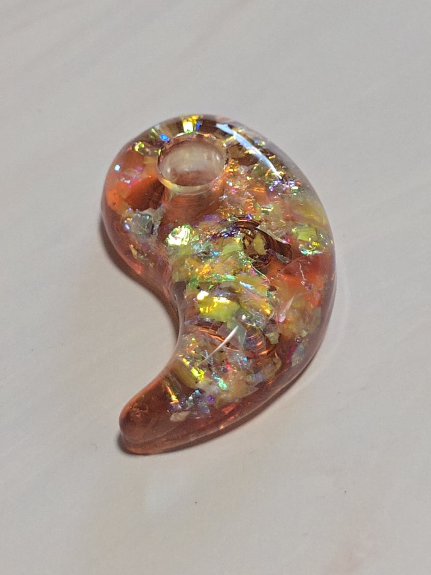 伊勢の波動水晶、 出雲の波動水晶を入 れたオルゴナイト勾玉。 陰陽統合されたパワーある勾玉です。