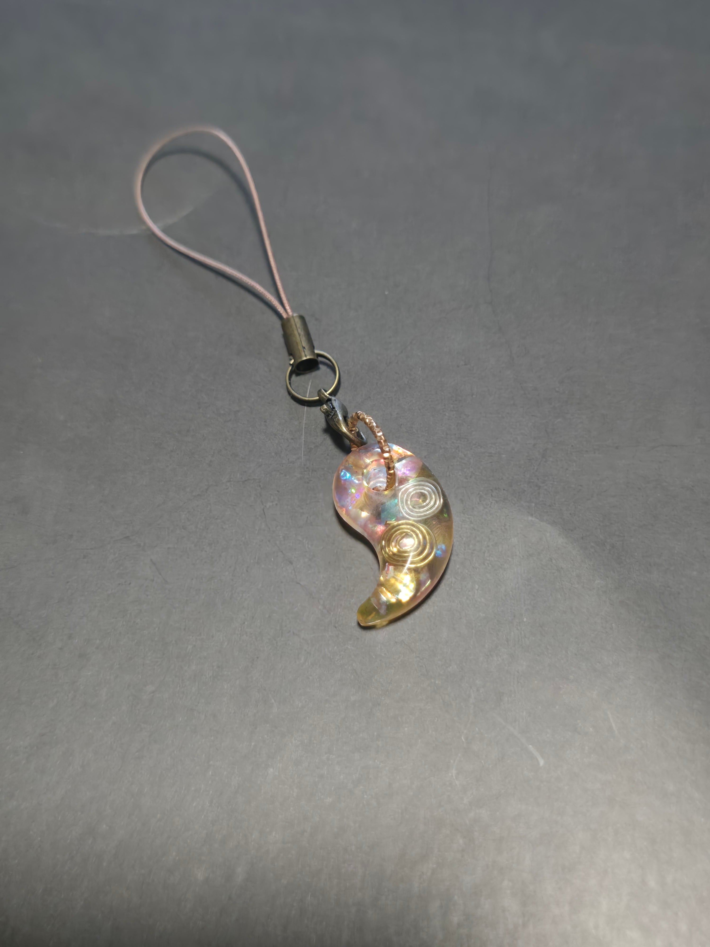 伊勢の波動水晶、出雲の波動水晶を入れたオルゴナイト勾玉。